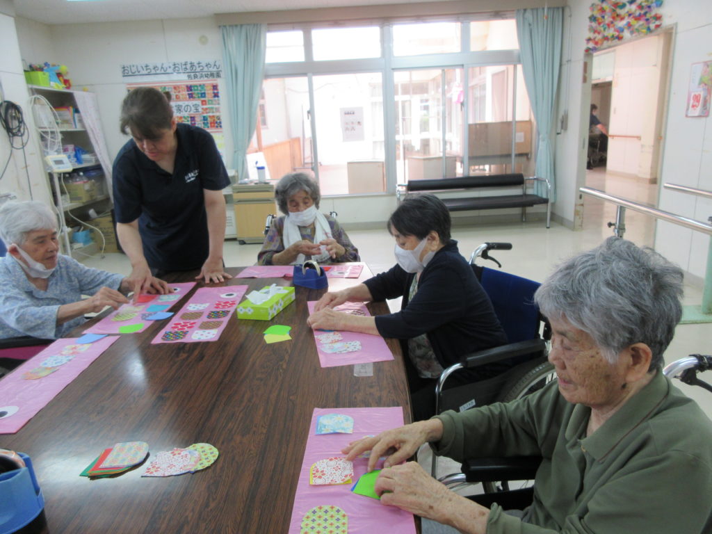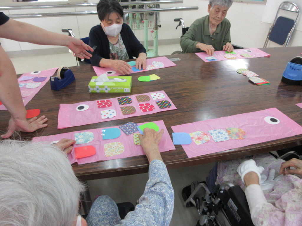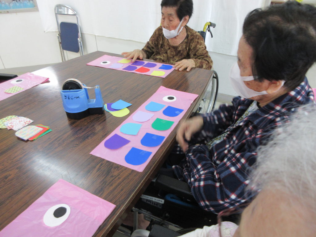 みんなでこいのぼり作成中
